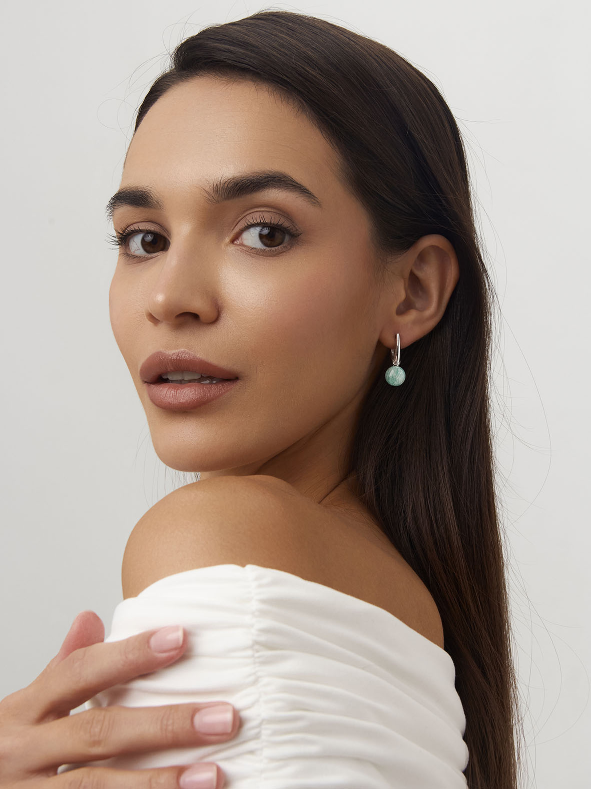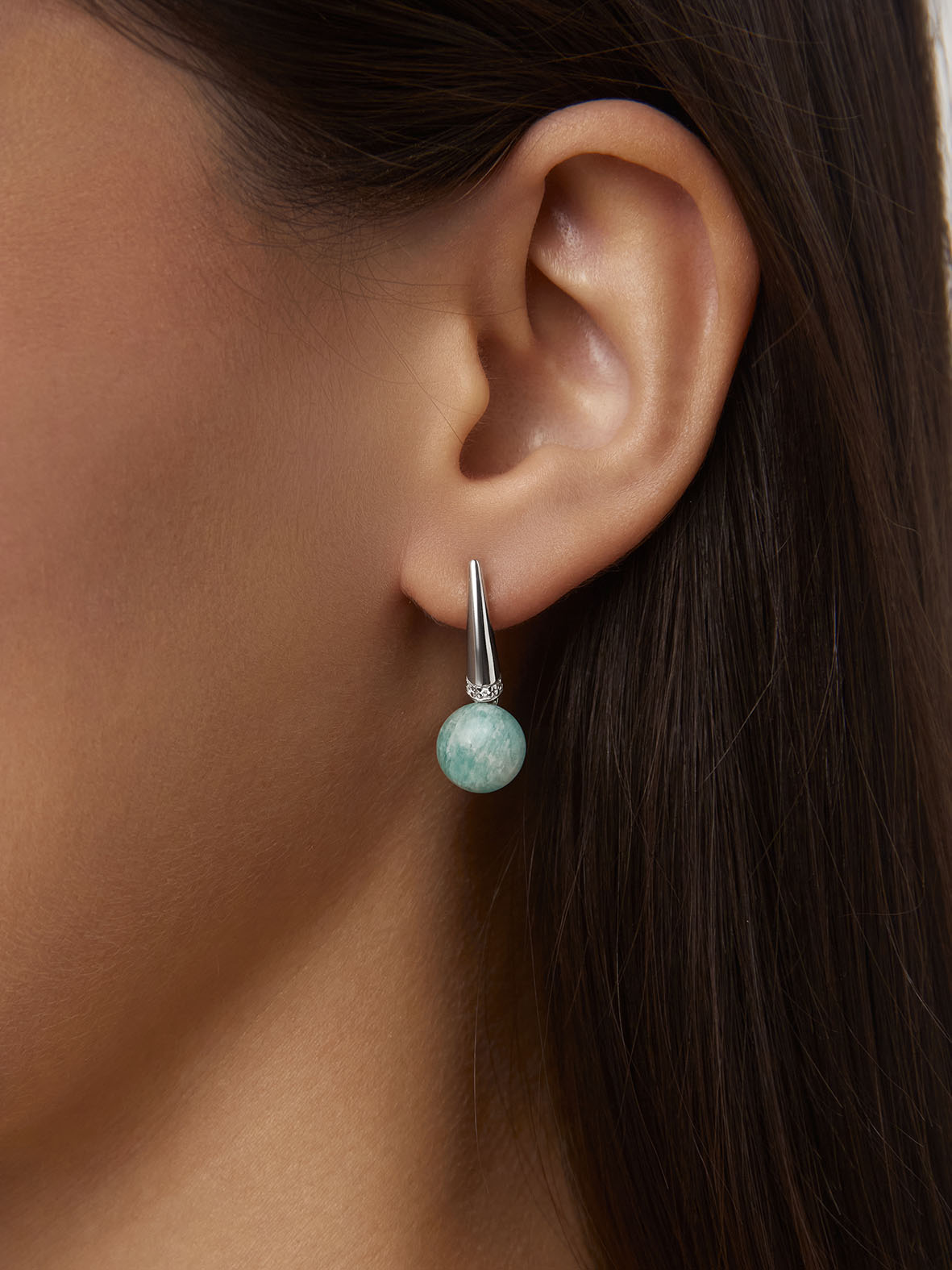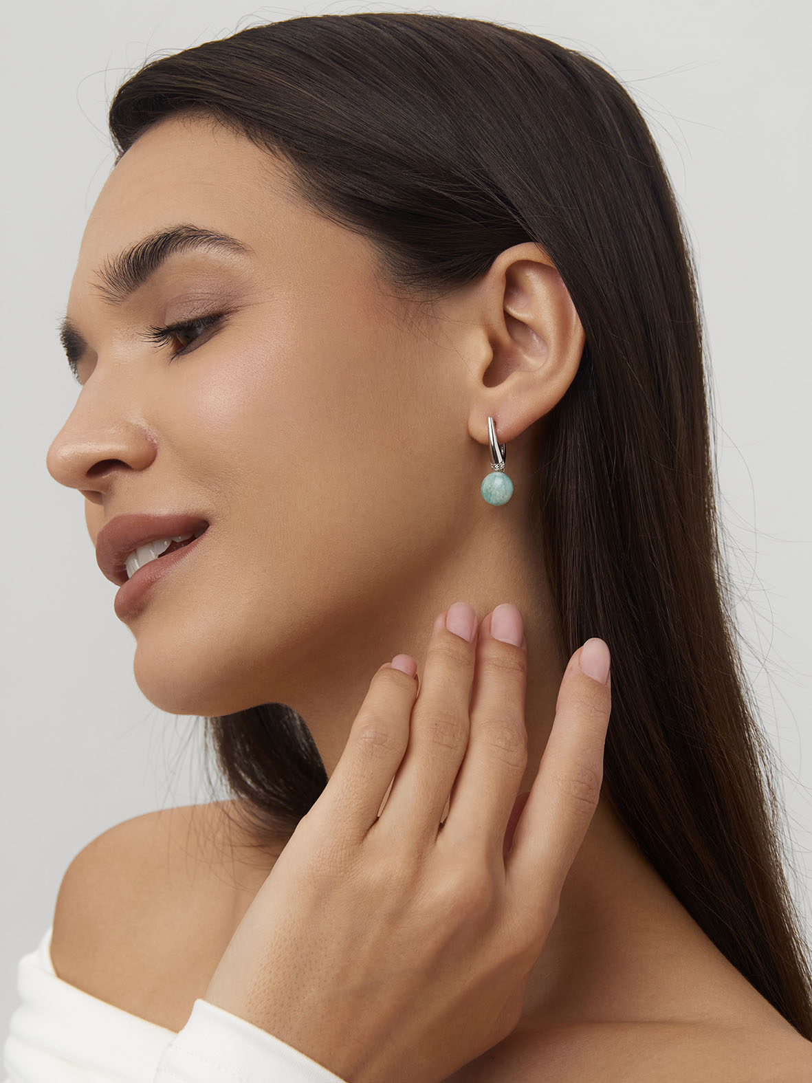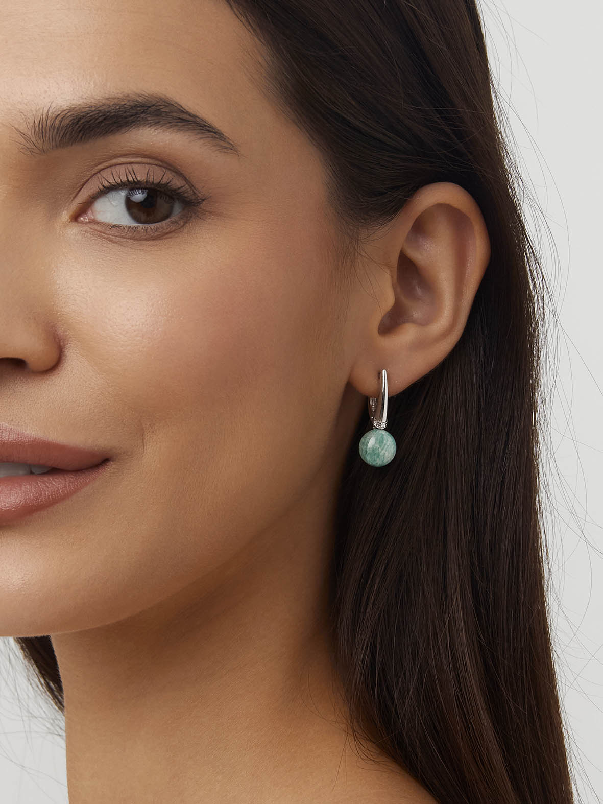 Серьги для женщин из серебра 925 пробы с амазонитами,фианитами из коллекции Уральские самоцветы артикул 2340371965л от компании KRASNOE