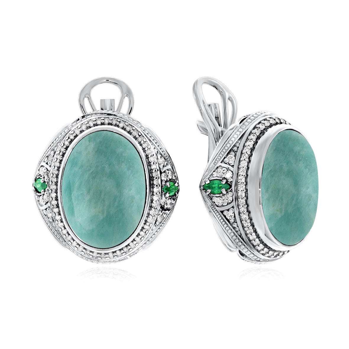 Серьги для женщин из серебра 925 пробы с амазонитами,фианитами из коллекции Династия артикул 2310370960л-60 от компании KRASNOE