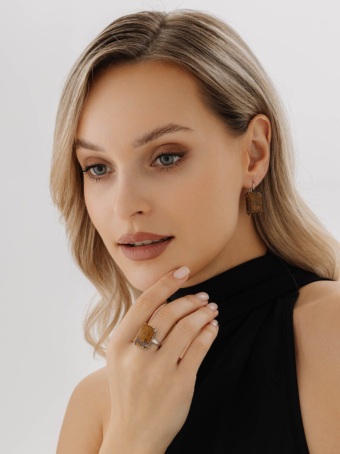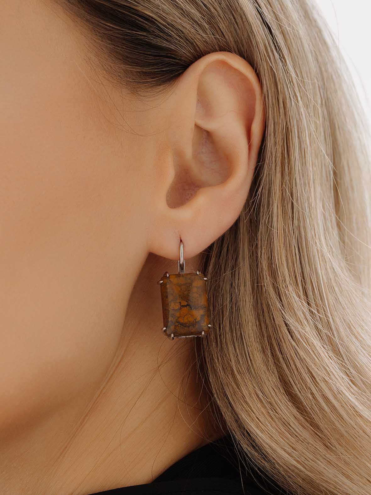 Серьги для женщин из серебра 925 пробы с яшмой из коллекции Уральские самоцветы артикул 2340305163 от компании KRASNOE