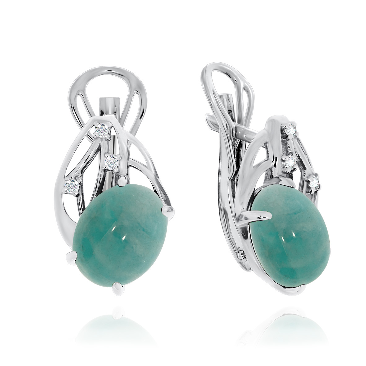 Серьги для женщин из серебра 925 пробы с амазонитами,фианитами из коллекции Fancy артикул 2340370985 от компании KRASNOE