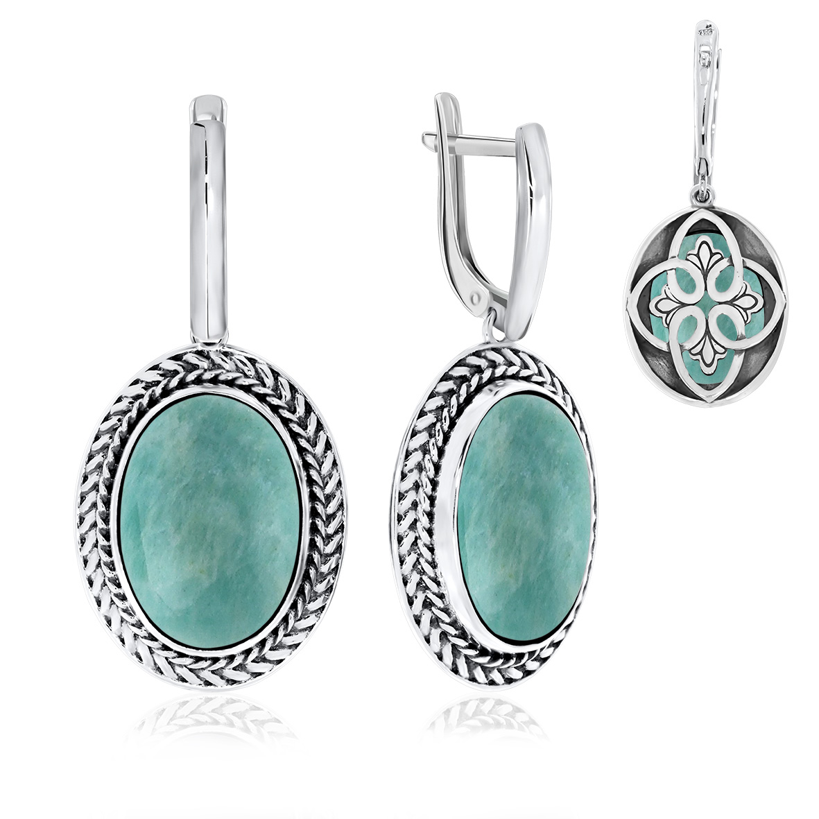 Серьги для женщин из серебра 925 пробы с амазонитами из коллекции Династия артикул 2310370966 от компании KRASNOE