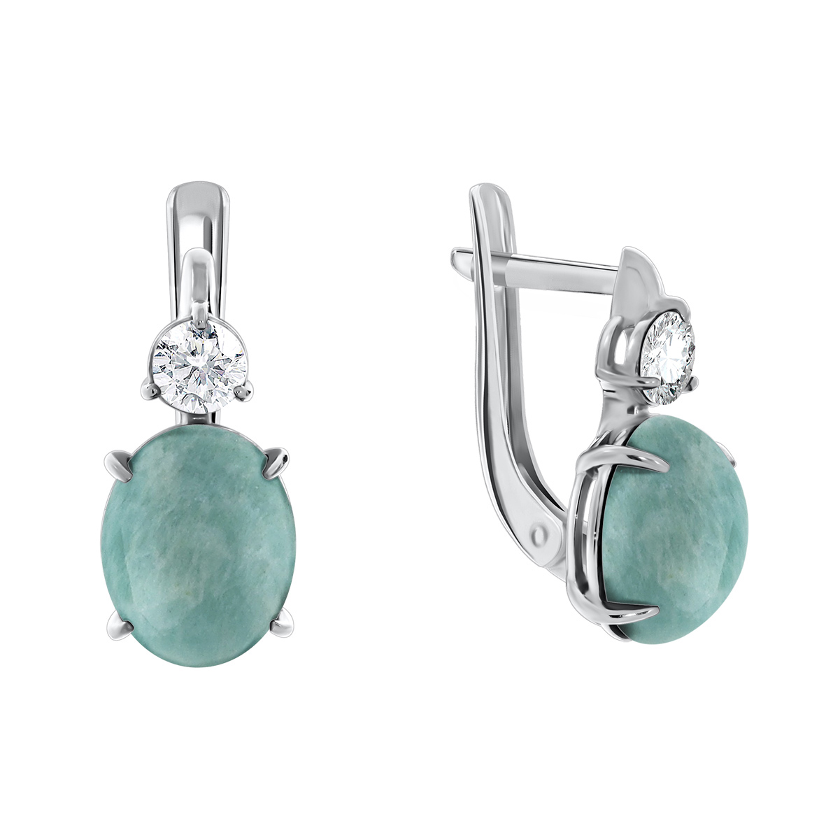 Серьги для женщин из серебра 925 пробы с фианитами,амазонитами из коллекции Созвездие артикул 2340370367 от компании KRASNOE