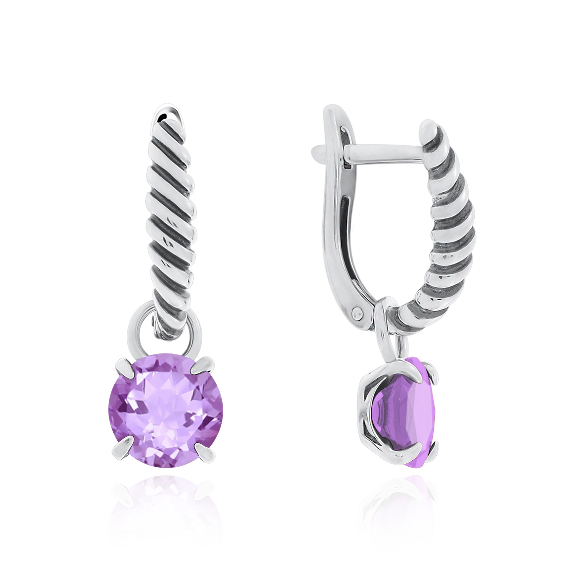 Серьги для женщин из серебра 925 пробы с аметистами из коллекции Соло кристаллов фактурой (рабочее название) артикул 2310061654 от компании KRASNOE