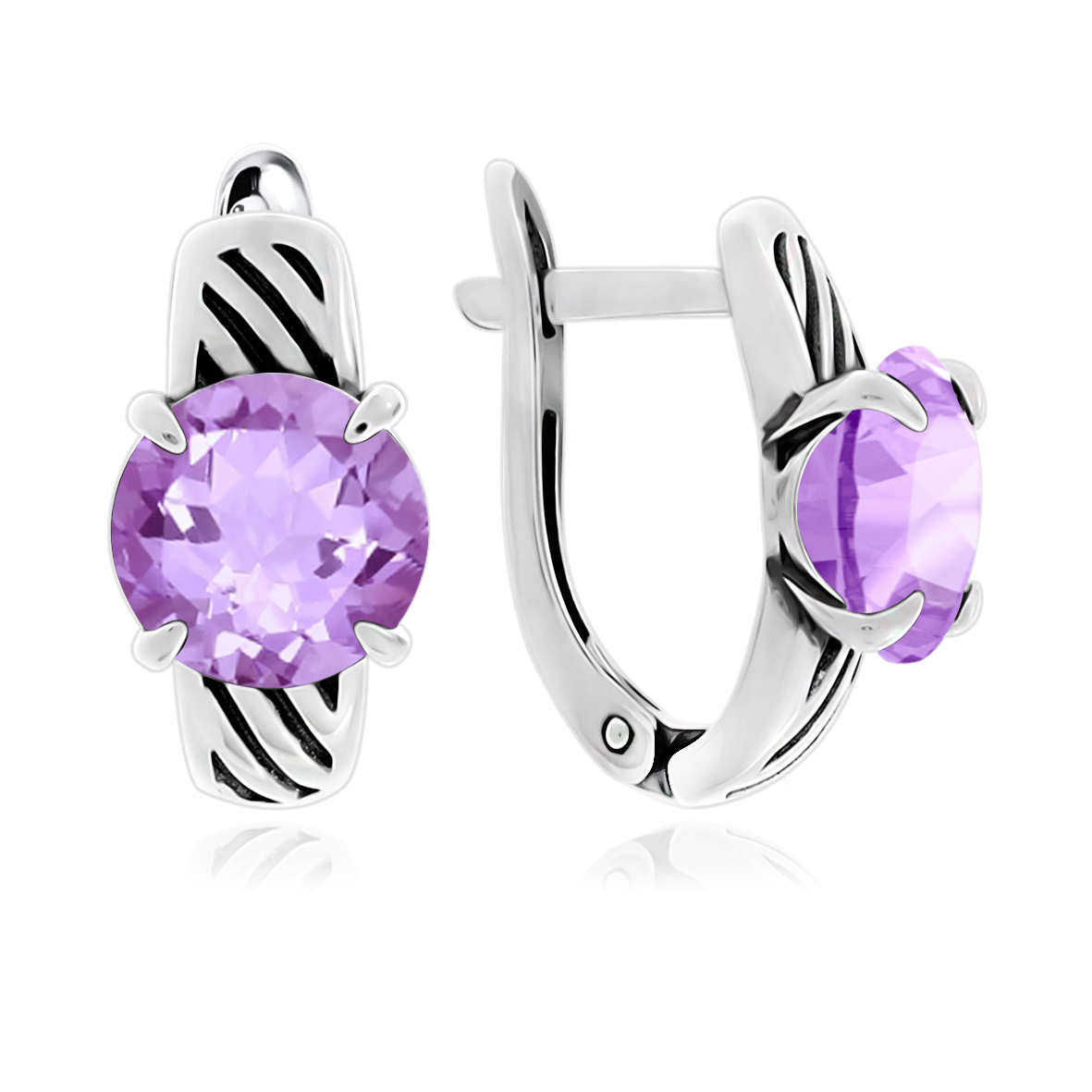 Серьги для женщин из серебра 925 пробы с аметистами из коллекции Соло кристаллов фактурой (рабочее название) артикул 2310061647 от компании KRASNOE