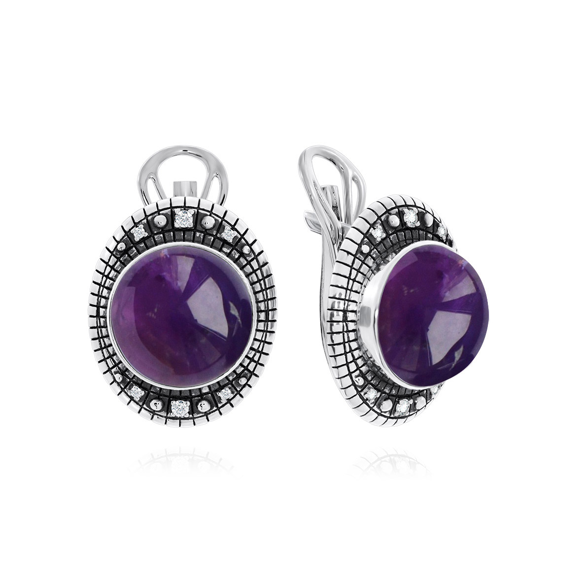 Серьги для женщин из серебра 925 пробы с аметистами,фианитами из коллекции Династия артикул 2340060955 от компании KRASNOE
