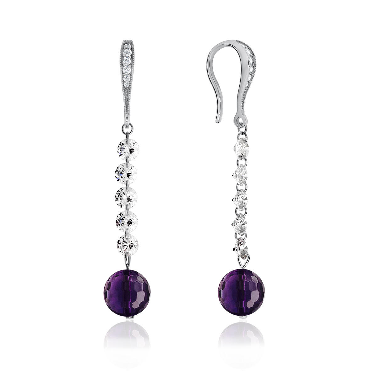 Серьги для женщин из серебра 925 пробы с аметистами,фианитами из коллекции Невесомость артикул 2340060611 от компании KRASNOE