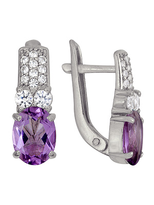 Серьги из серебра 925 пробы с аметистами,фианитами артикул 3837013196л от компании Алмаз-Холдинг