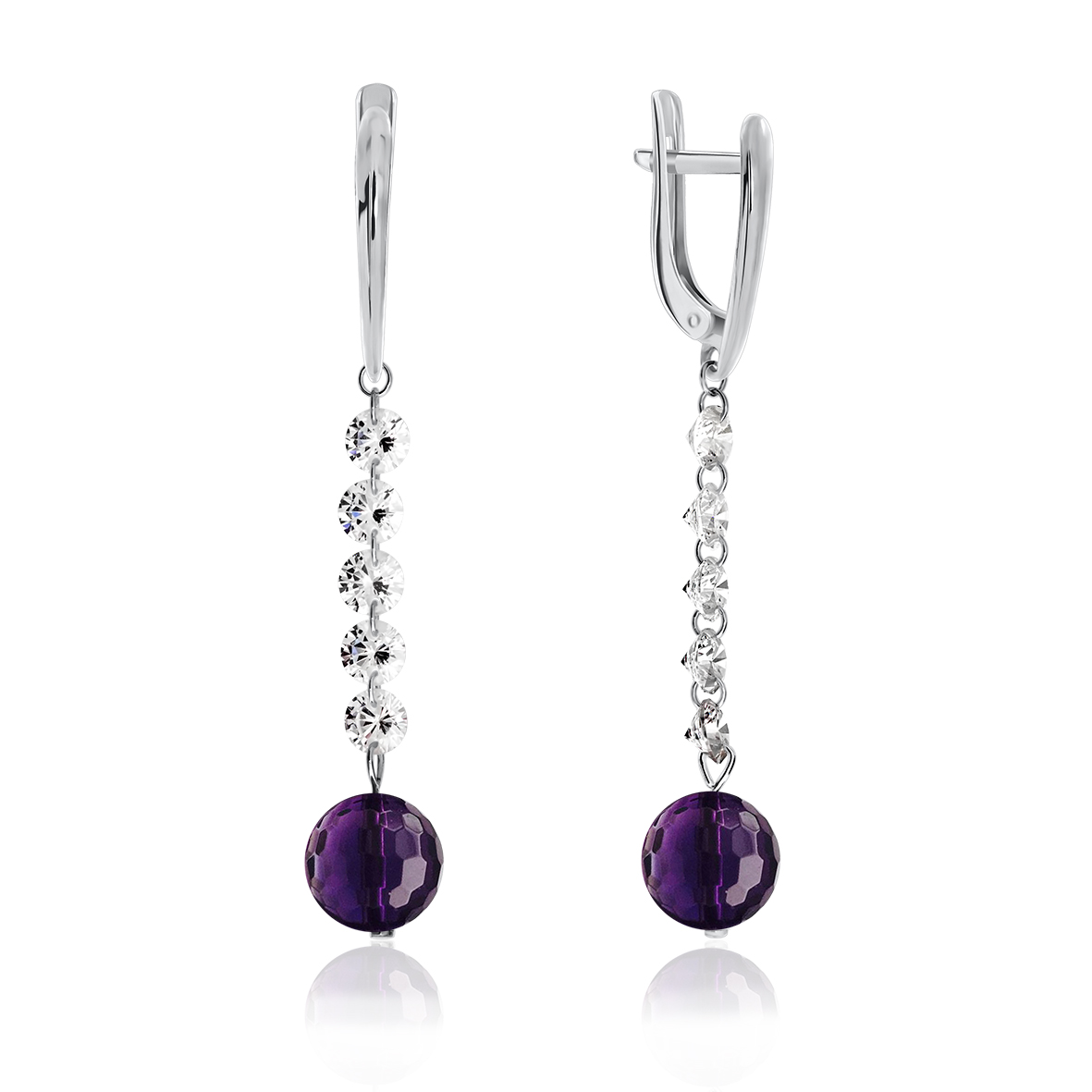 Серьги для женщин из серебра 925 пробы с аметистами,фианитами из коллекции Невесомость артикул 2340060624 от компании KRASNOE