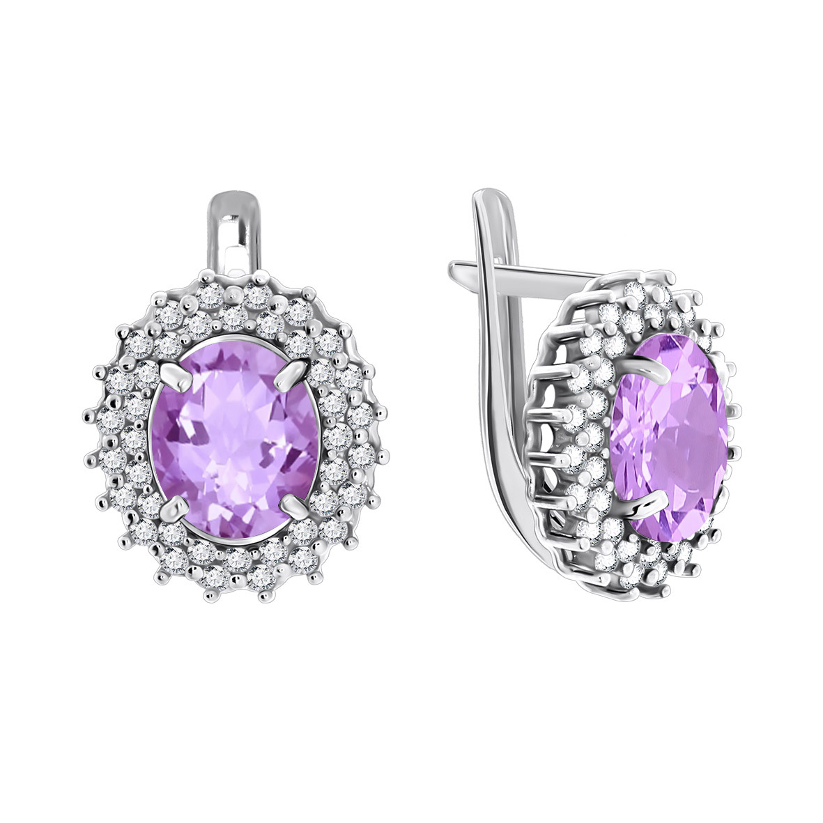 Серьги для женщин из серебра 925 пробы с аметистами,фианитами из коллекции Royals артикул 2340790145л от компании KRASNOE