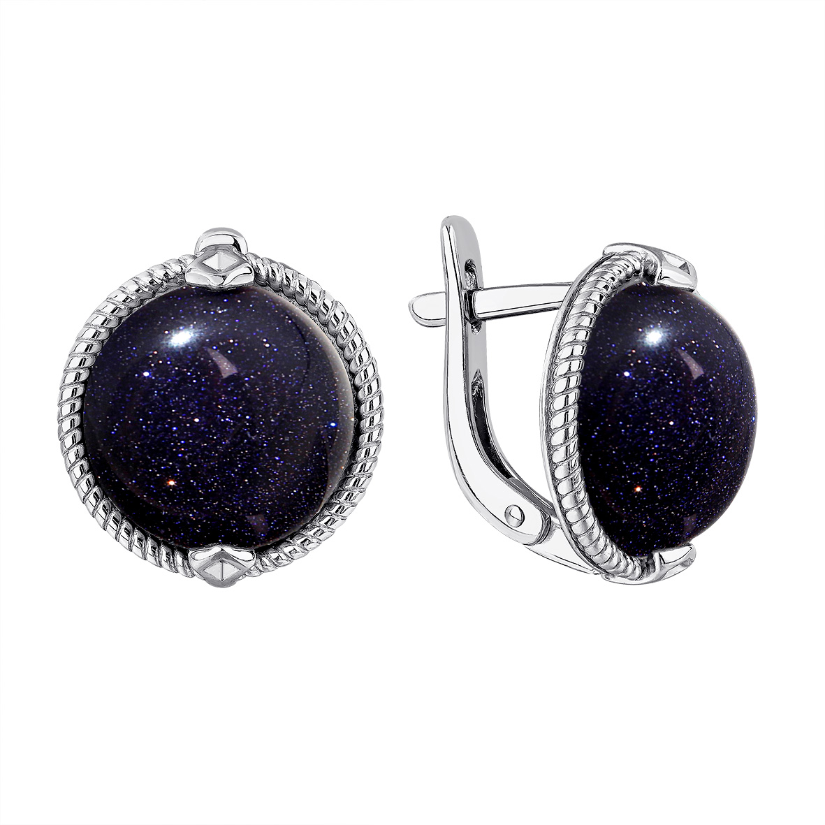 Серьги для женщин из серебра 925 пробы с синтетическими авантюринами из коллекции Уральские самоцветы артикул 2340365152 от компании KRASNOE