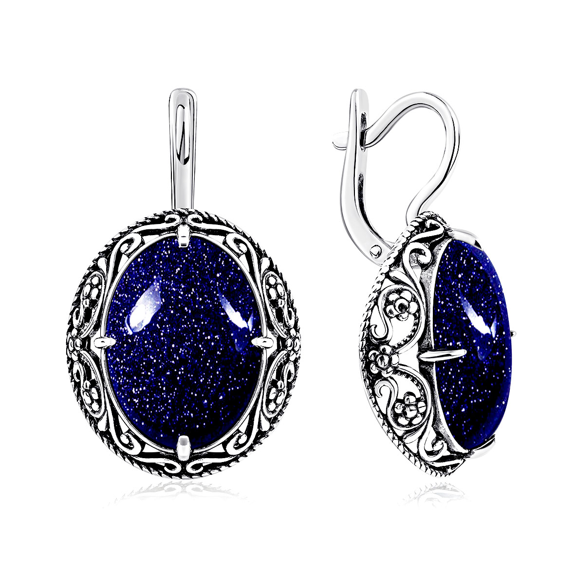 Серьги для женщин из серебра 925 пробы с авантюрин синт.ами из коллекции Филигранная (рабочее название) артикул 2310365087 от компании KRASNOE