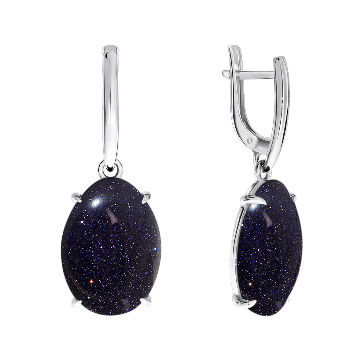Серьги для женщин из серебра 925 пробы с синтетическими авантюринами из коллекции Уральские самоцветы артикул 2340360505-80 от компании KRASNOE