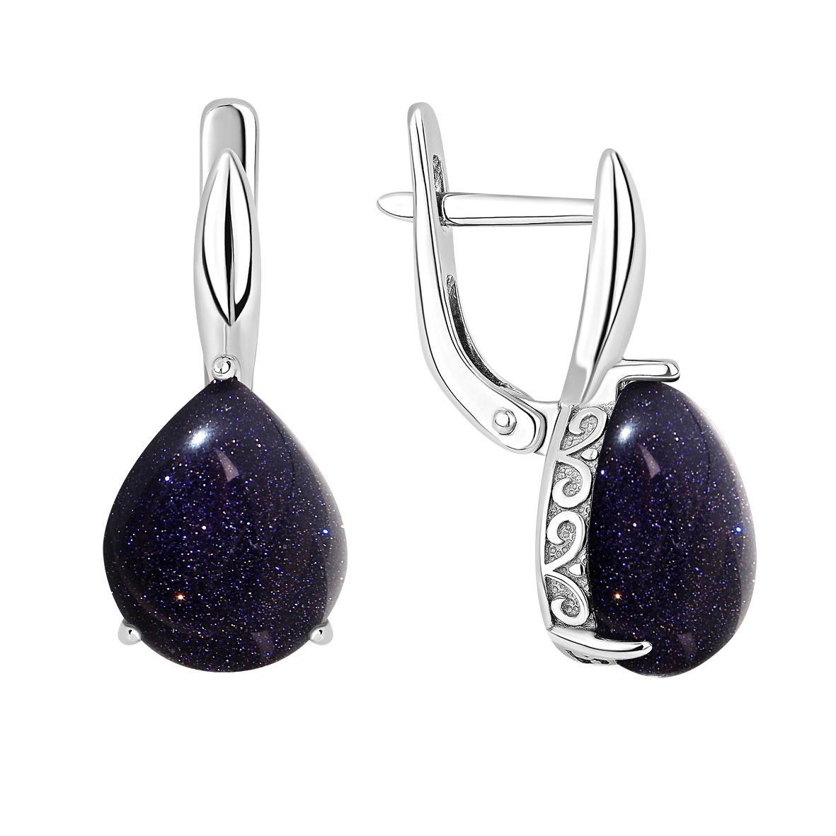 Серьги для женщин из серебра 925 пробы с синтетическими авантюринами из коллекции Уральские самоцветы артикул 2340365161 от компании KRASNOE