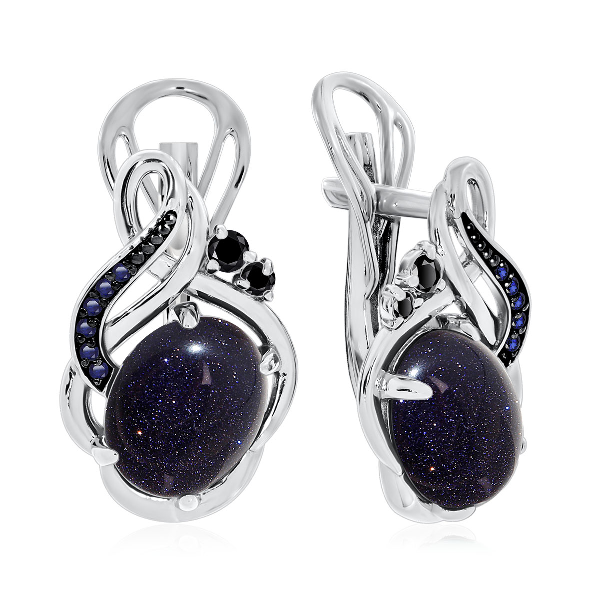 Серьги для женщин из серебра 925 пробы с синтетическими авантюринами,фианитами,,ситаллами из коллекции Медина артикул 2348360949-80 от компании KRASNOE