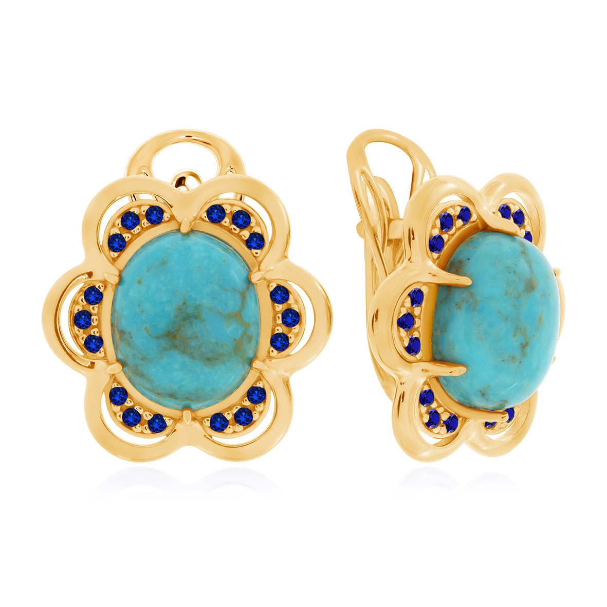 Серьги для женщин из серебра 925 пробы с бирюзой,ситаллами из коллекции Уральские самоцветы артикул 2320311882л от компании KRASNOE
