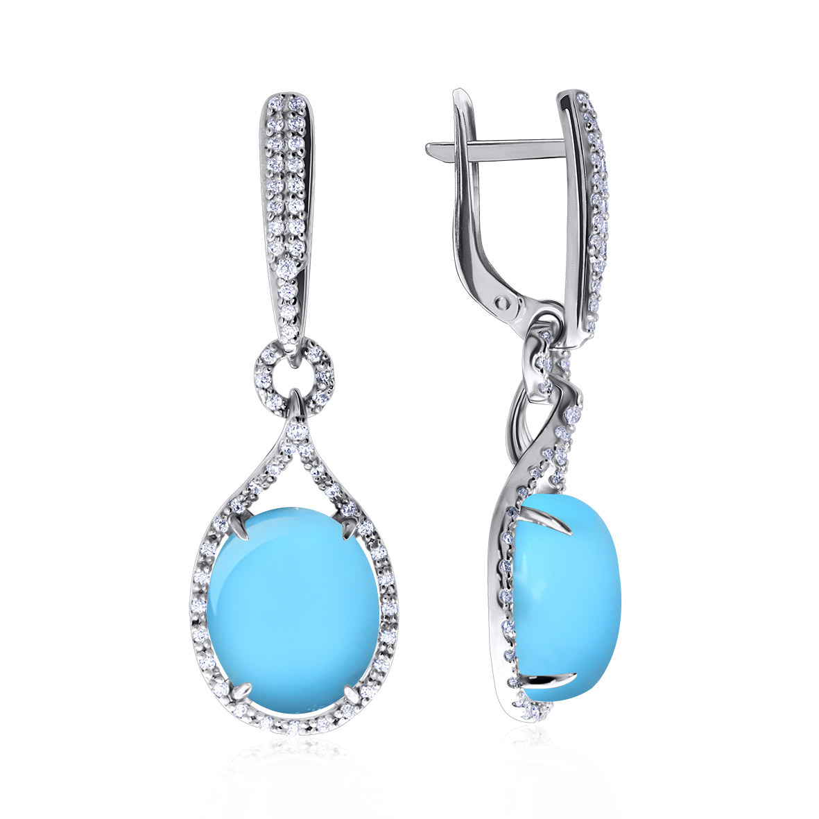Серьги для женщин из серебра 925 пробы с бирюзой,фианитами из коллекции Уральские самоцветы артикул 2340270194-1 от компании KRASNOE