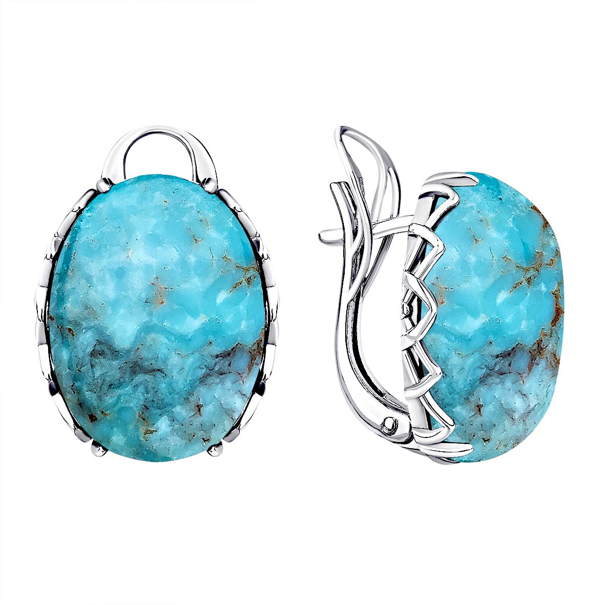 Серьги для женщин из серебра 925 пробы с бирюзой из коллекции Уральские самоцветы артикул 2340315047 от компании KRASNOE