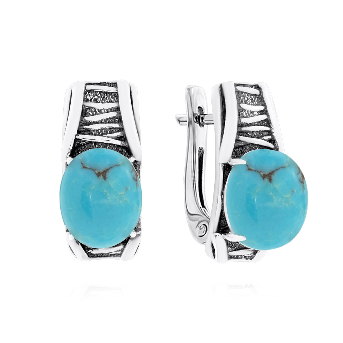 Серьги для женщин из серебра 925 пробы с бирюзой из коллекции Игра фактур артикул 2340311756 от компании KRASNOE