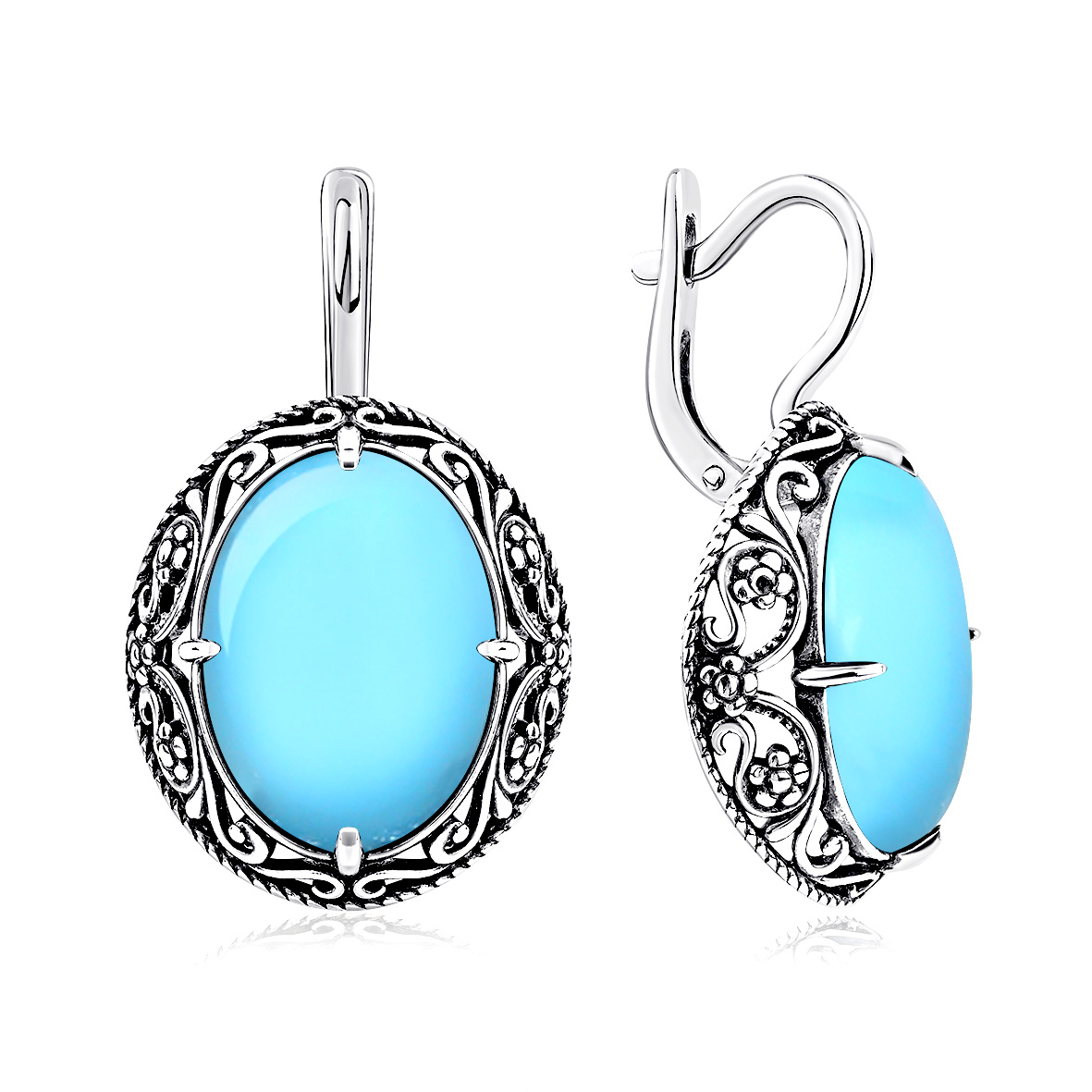 Серьги для женщин из серебра 925 пробы с бирюзой из коллекции Филигранная артикул 2310315087 от компании KRASNOE