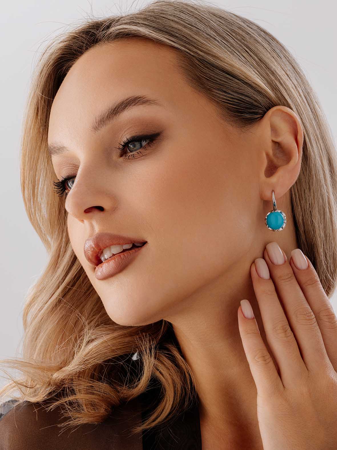 Серебряные серьги с натуральной бирюзой - изящные украшения, лаконичный вариант как на каждый день, так и для выхода. Подходит, если вы хотите сделать акцент на лице, не перегружая образ. Такая конструкция является одновременно и практичной, и красивой. Они подходят к любой форме лица, способны украсить любой образ. Бирюза помогает нормализовать сон, улучшить настроение, избавиться от болезней желудка и печени, заживить раны и ожоги. KRASNOE - нежные и трендовые украшения из серебра 925 собственной разработки, дизайна и производства для красоты твоих будней! В коллекцию ювелирного бренда KRASNOE входят пусеты, колье-чокеры и галстуки, джекеты, серьги-трансформеры, а также яркая детская колекция. Размер вставки бирюза натуральная круг кабошон 12.