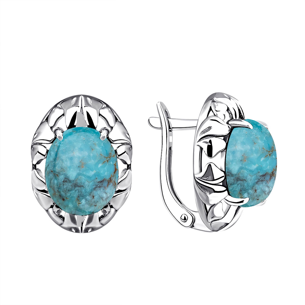 Серьги для женщин из серебра 925 пробы с бирюзой из коллекции Уральские самоцветы артикул 2340311865 от компании KRASNOE