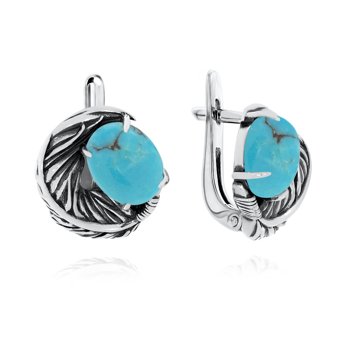 Серьги для женщин из серебра 925 пробы с бирюзой из коллекции Жар-птица артикул 2310311601 от компании KRASNOE