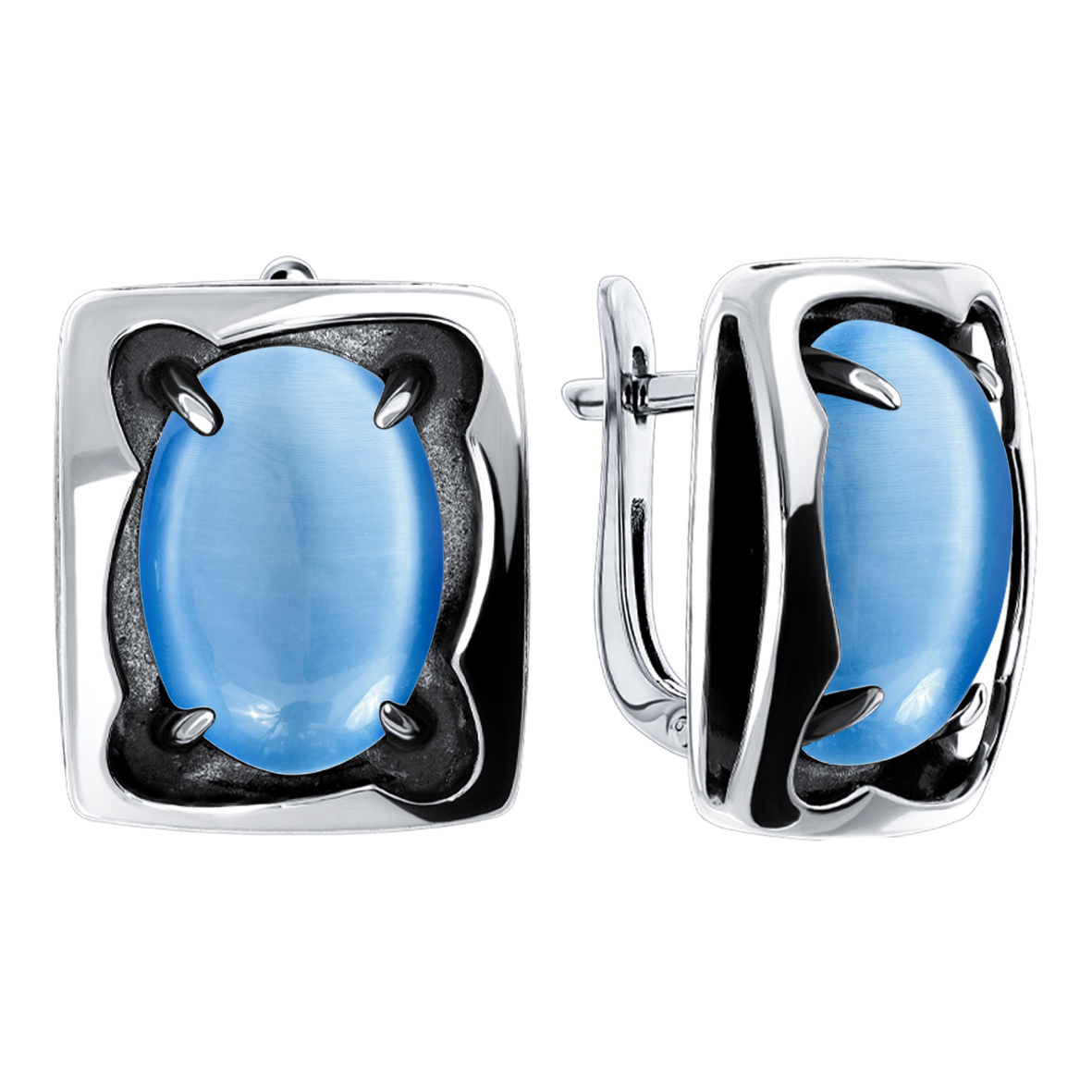 Серьги для женщин из серебра 925 пробы с имитацией кошачьего глаза из коллекции Уральские самоцветы артикул 2310265708-70 от компании KRASNOE