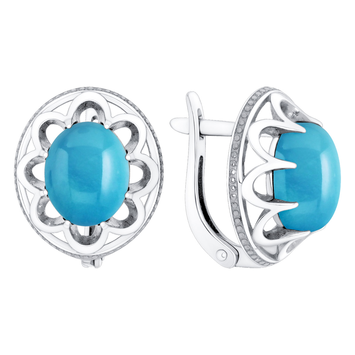 Серьги для женщин из серебра 925 пробы с бирюзой из коллекции Уральские самоцветы артикул 2340315784 от компании KRASNOE