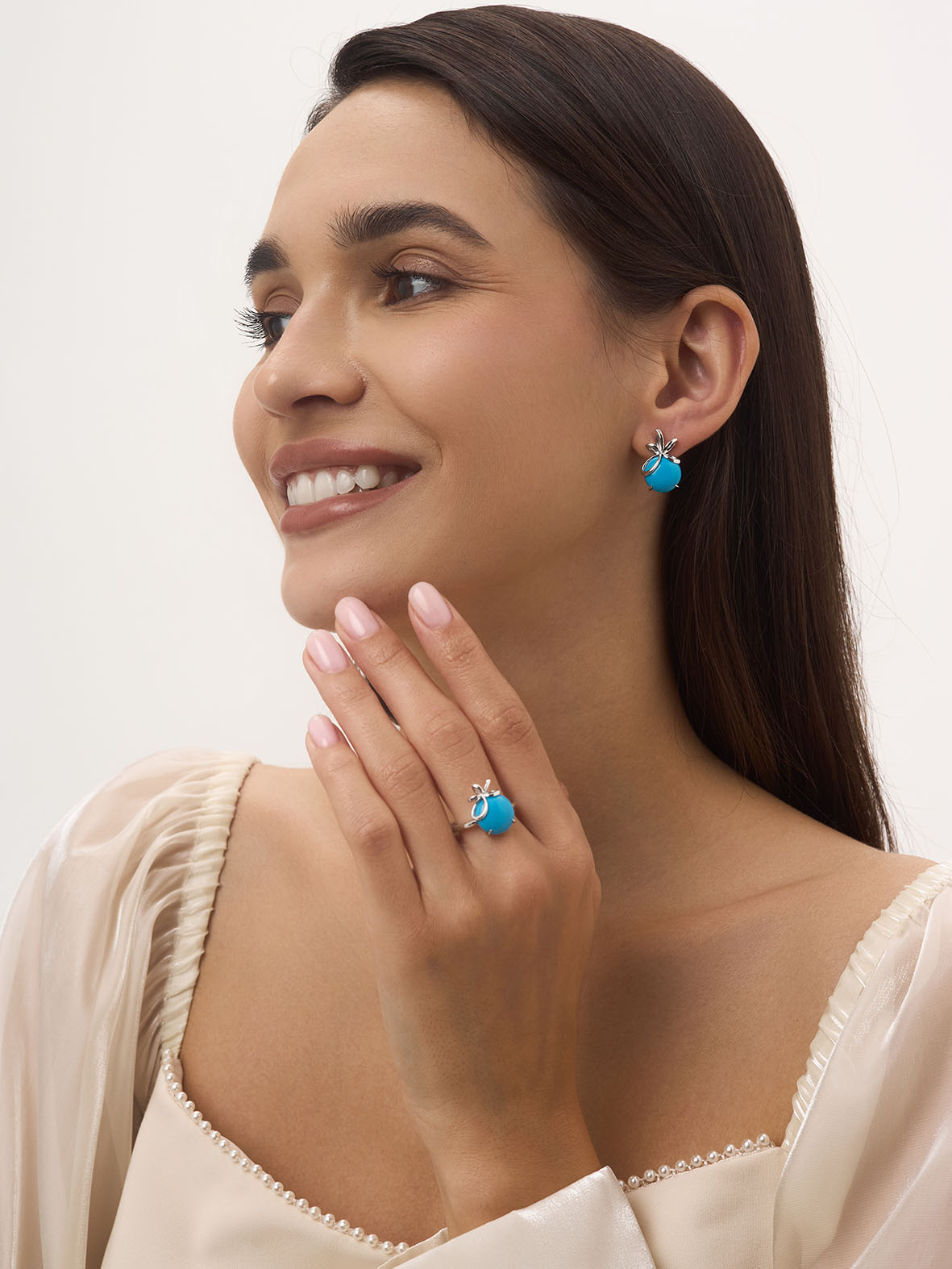Серьги для женщин из серебра 925 пробы с бирюзой из коллекции Уральские самоцветы артикул 2340Б25807 от компании KRASNOE