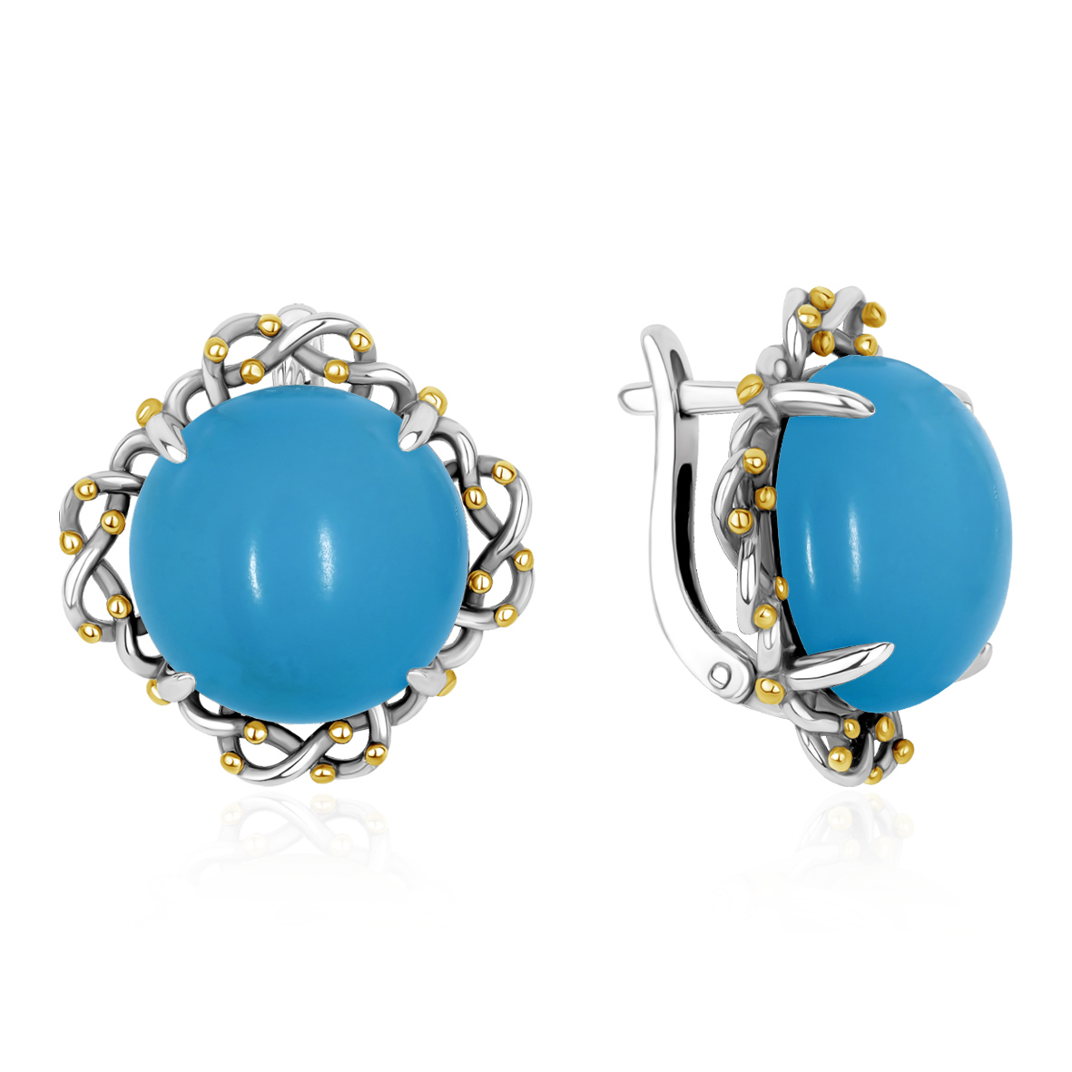 Серьги для женщин из серебра 925 пробы с бирюзой из коллекции Уральские самоцветы артикул 2317Б25326 от компании KRASNOE