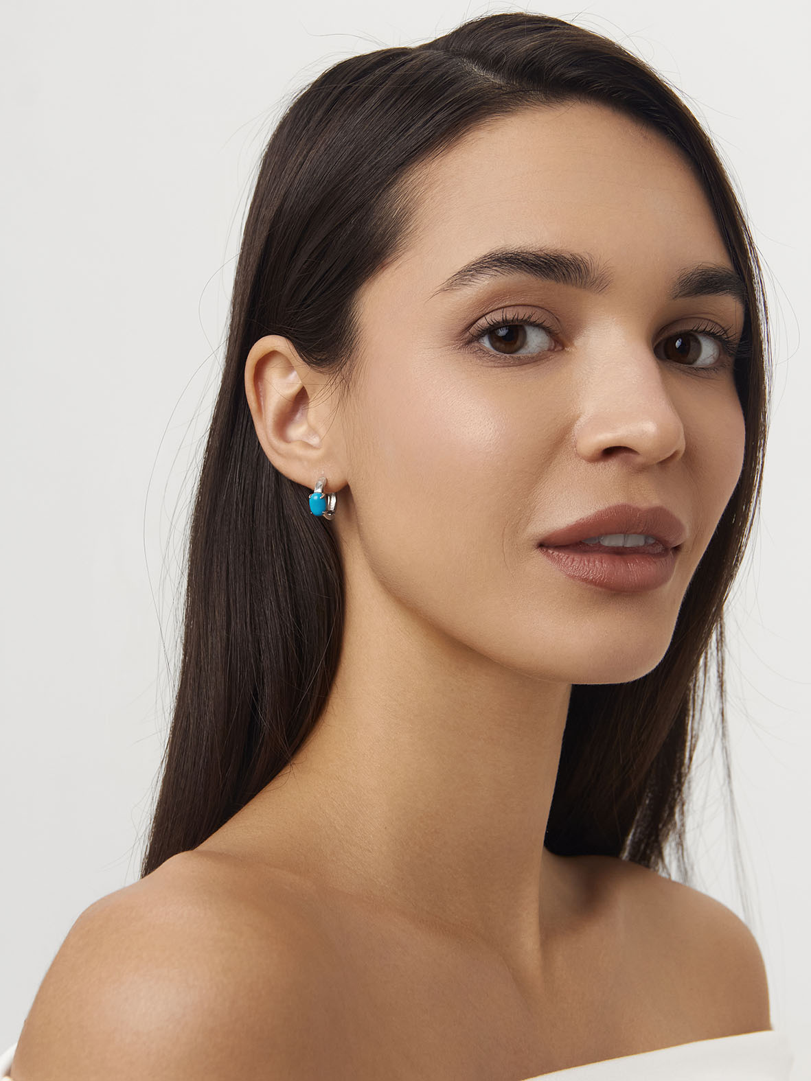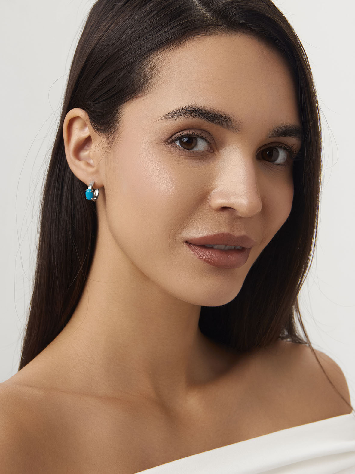 Серьги для женщин из серебра 925 пробы с бирюзой из коллекции Уральские самоцветы артикул 2340271878 от компании KRASNOE