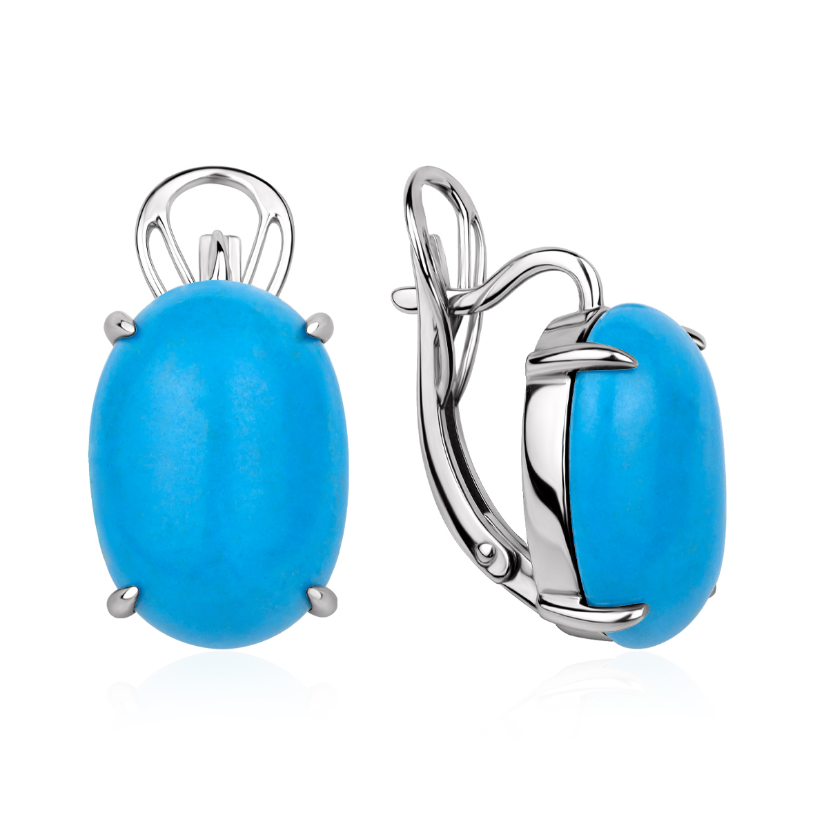 Серьги для женщин из серебра 925 пробы с бирюзой из коллекции Уральские самоцветы артикул 2340Б26385-1 от компании KRASNOE