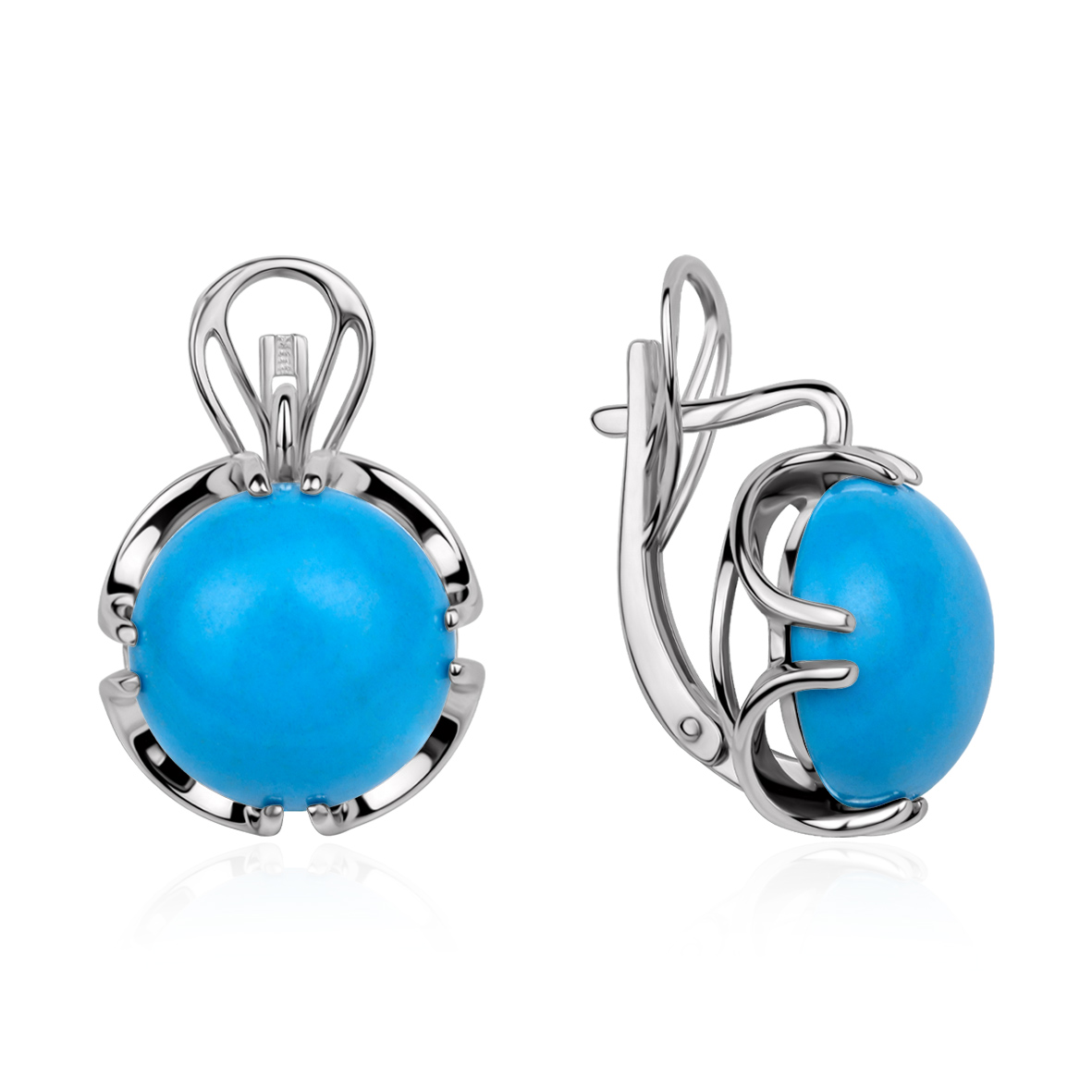 Серьги для женщин из серебра 925 пробы с бирюзой из коллекции Уральские самоцветы артикул 2340Б26383 от компании KRASNOE