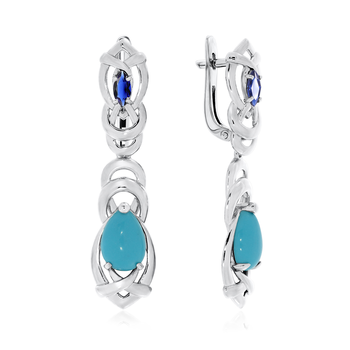 Серьги для женщин из серебра 925 пробы с бирюзой,кристаллами ювелирными из коллекции Медина артикул 2340270944 от компании KRASNOE