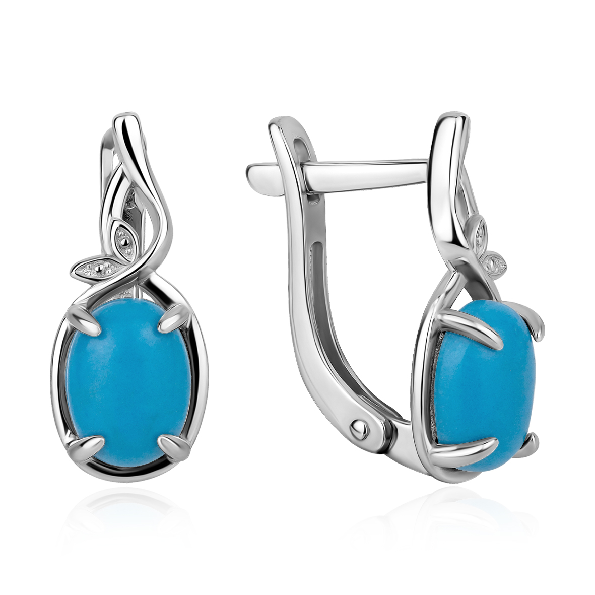 Серьги для женщин из серебра 925 пробы с бирюзой из коллекции Уральские самоцветы артикул 2340Б26336 от компании KRASNOE