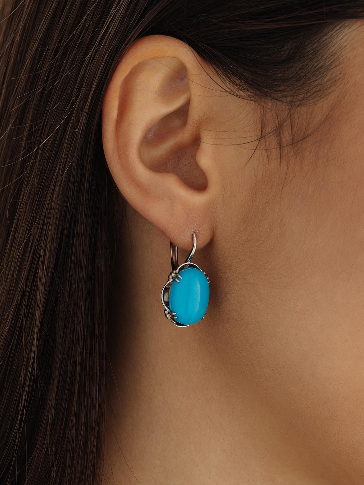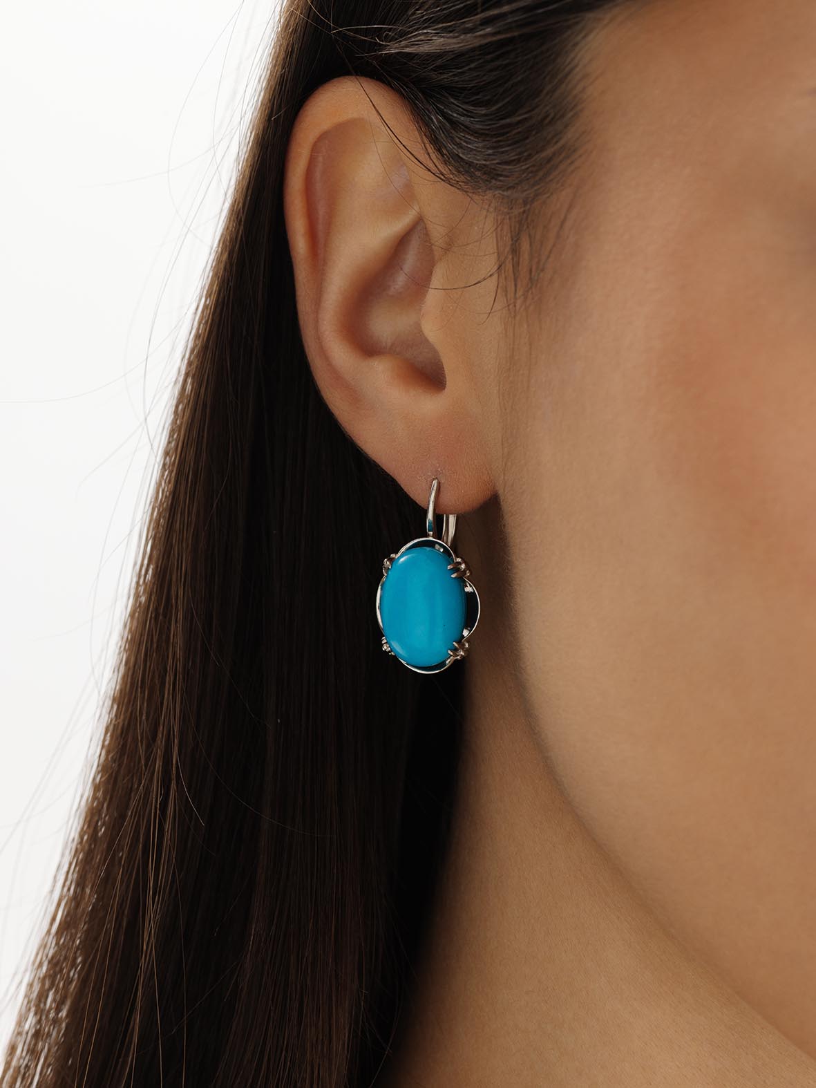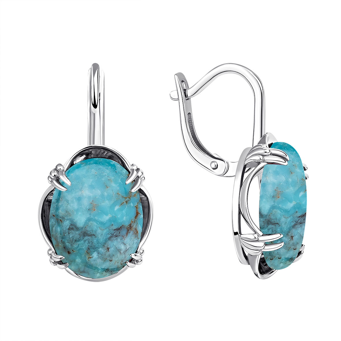 Серьги для женщин из серебра 925 пробы с бирюзой из коллекции Уральские самоцветы артикул 2340311997 от компании KRASNOE