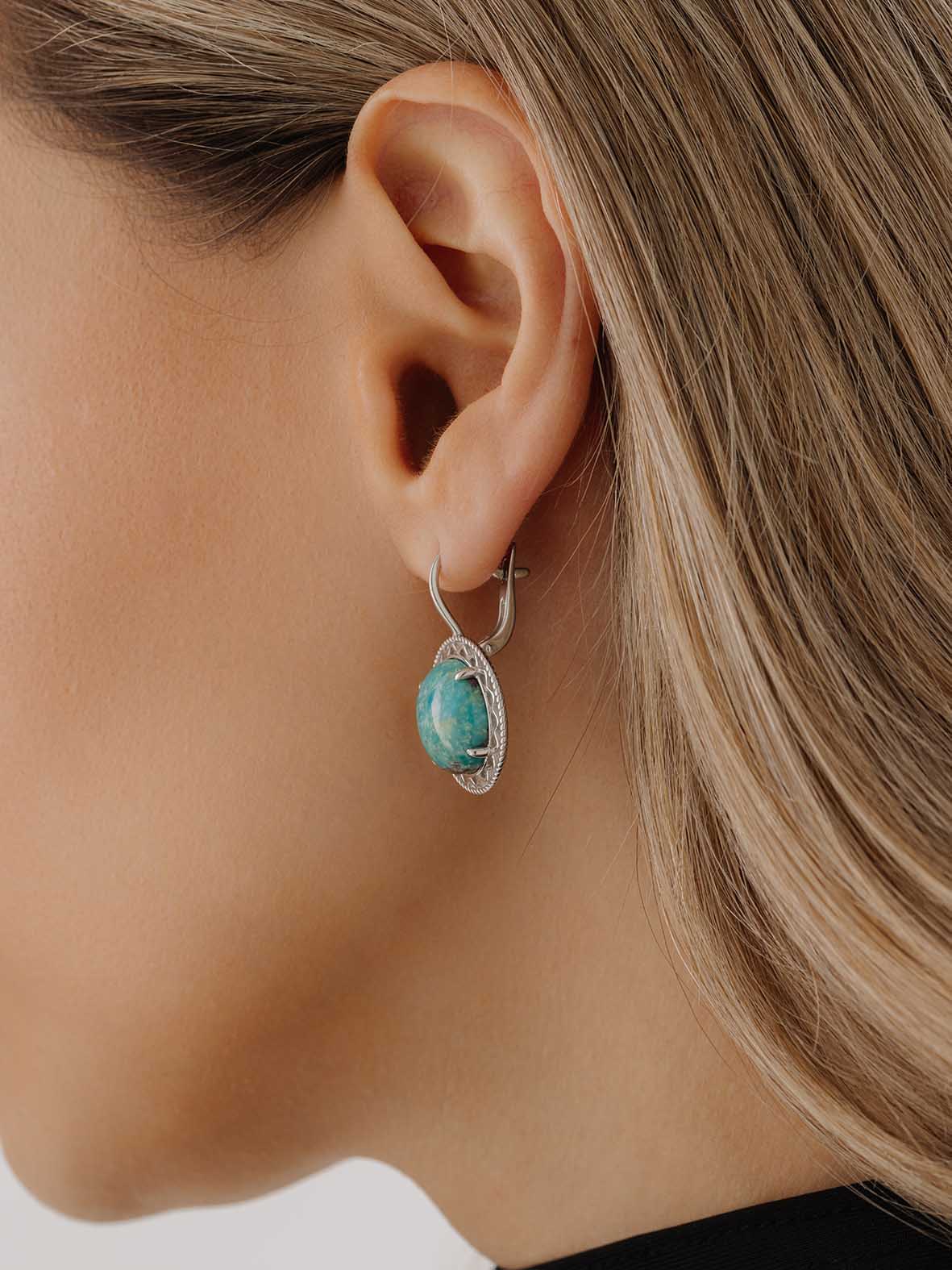 Серьги для женщин из серебра 925 пробы с бирюзой из коллекции Уральские самоцветы артикул 2340311999 от компании KRASNOE