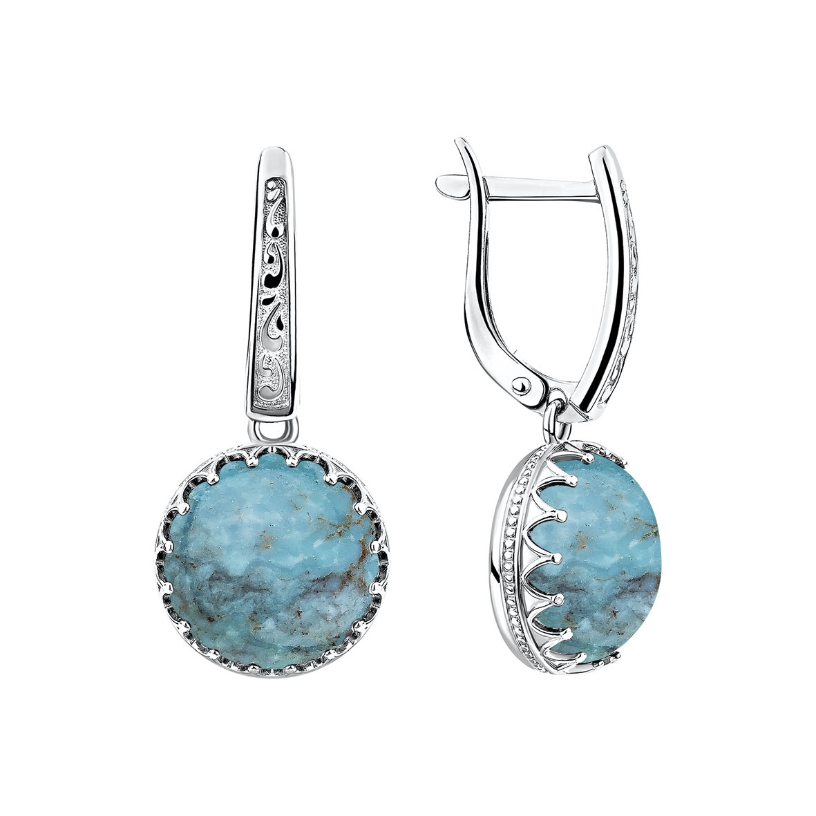 Серьги для женщин из серебра 925 пробы с бирюзой из коллекции Уральские самоцветы артикул 2340311967 от компании KRASNOE