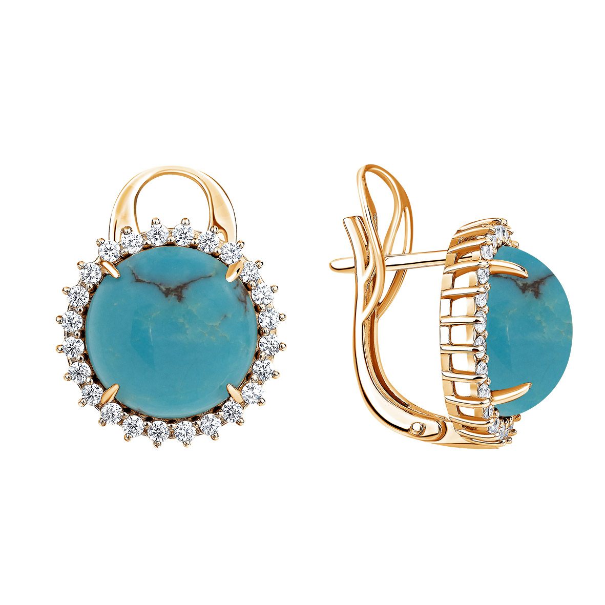 Серьги для женщин из серебра 925 пробы с бирюзой,фианитами из коллекции Уральские самоцветы артикул 2320311977 от компании KRASNOE