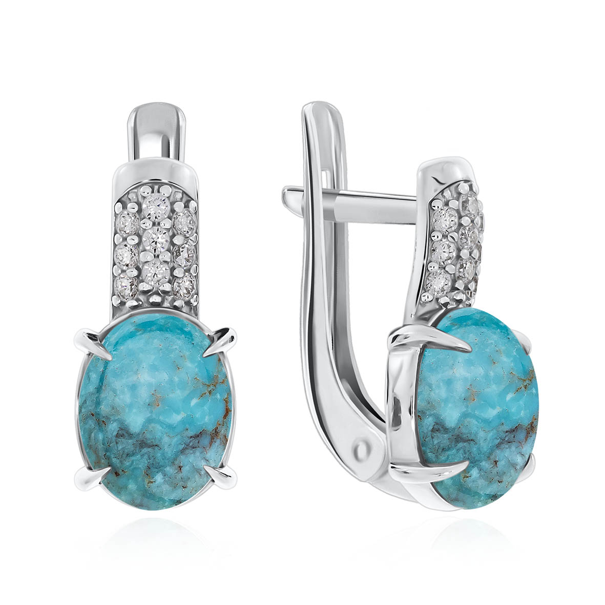 Серьги для женщин из серебра 925 пробы с бирюзой,фианитами из коллекции Созвездие артикул 2340310373л от компании KRASNOE