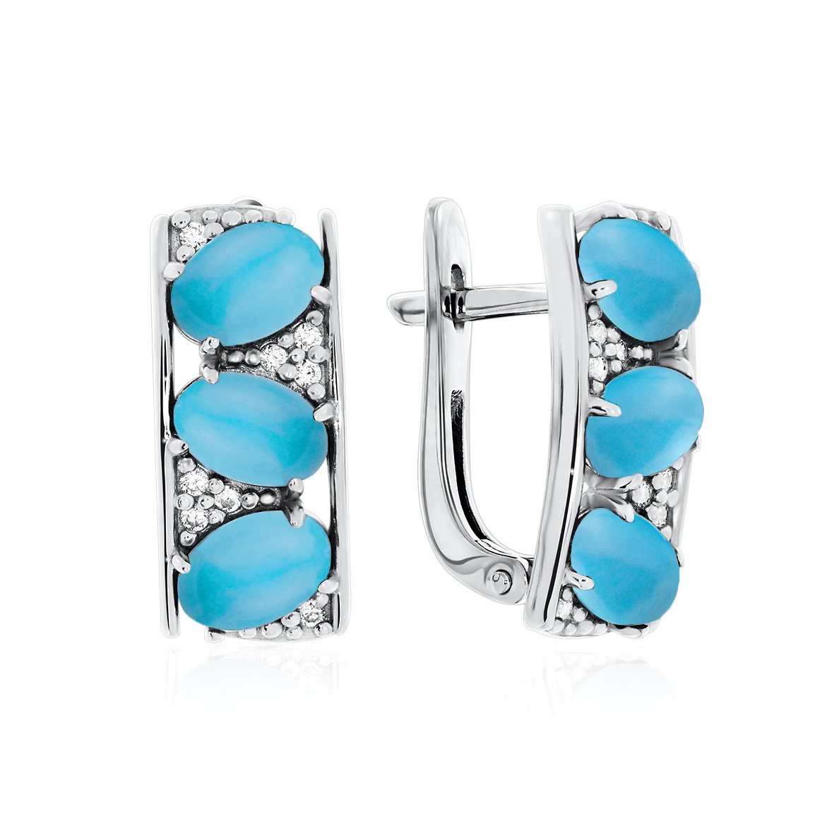 Серьги для женщин из серебра 925 пробы с бирюзой,фианитами из коллекции Сад камней артикул 2340272909 от компании KRASNOE