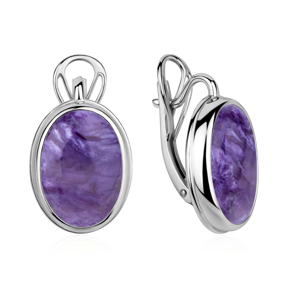 Серьги для женщин из серебра 925 пробы с чароитами из коллекции Уральские самоцветы артикул 2340466378 от компании KRASNOE