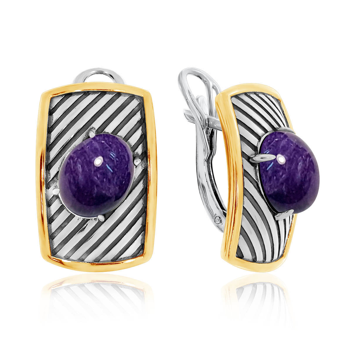 Серьги для женщин из серебра 925 пробы с чароитами из коллекции Игра фактур артикул 2317461757 от компании KRASNOE