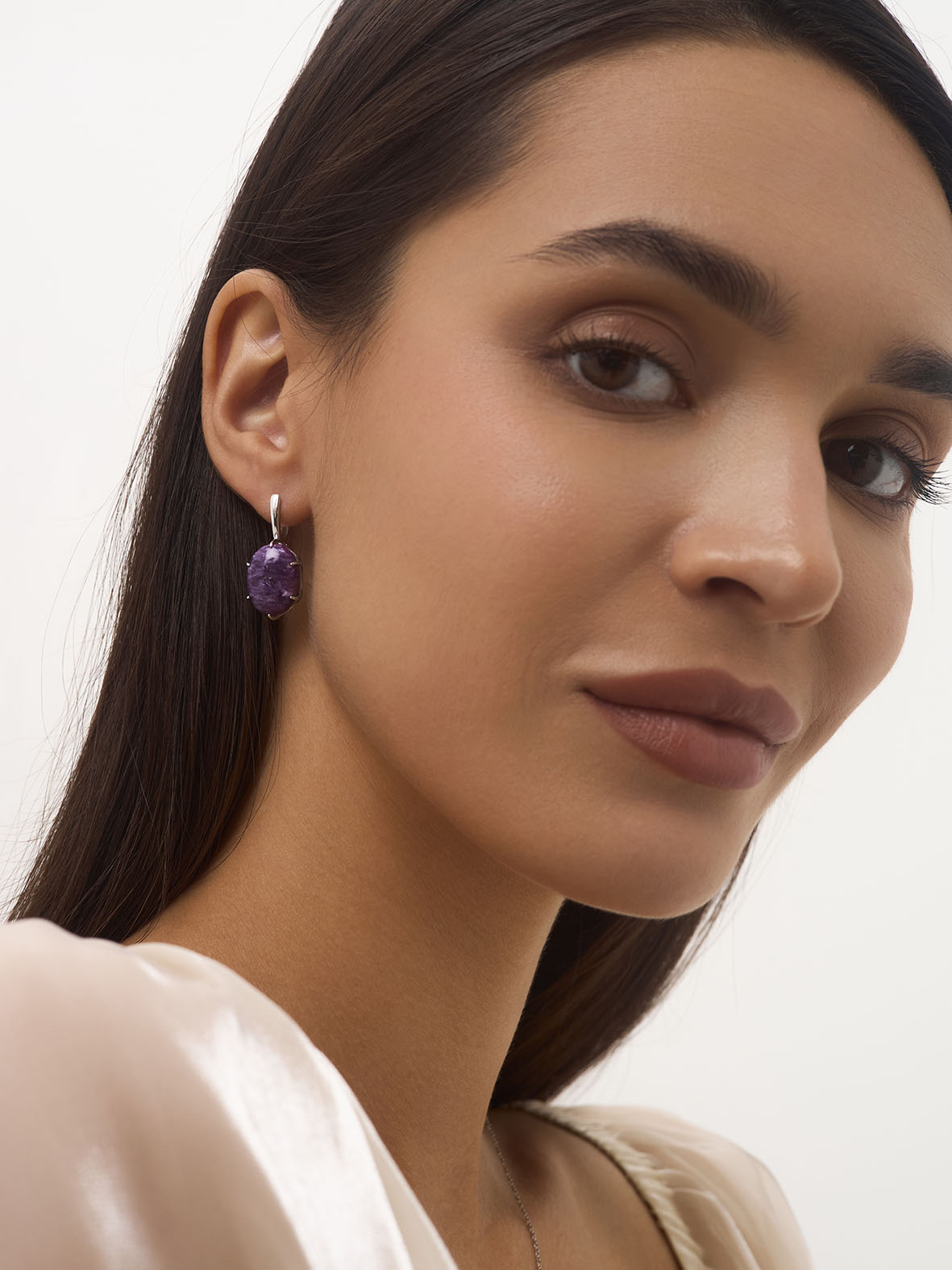 Серьги для женщин из серебра 925 пробы с чароитами из коллекции Уральские самоцветы артикул 2340461944 от компании KRASNOE