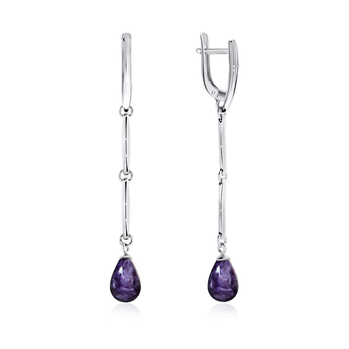 Серьги для женщин из серебра 925 пробы с чароитами из коллекции Magic stick артикул 2340460736-1 от компании KRASNOE