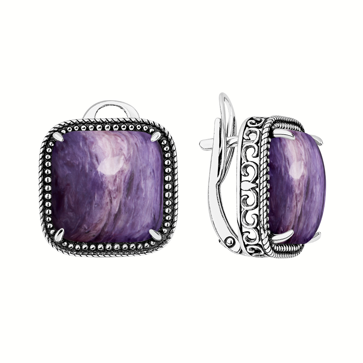 Серьги для женщин из серебра 925 пробы с чароитами из коллекции Династия артикул 2310465157 от компании KRASNOE