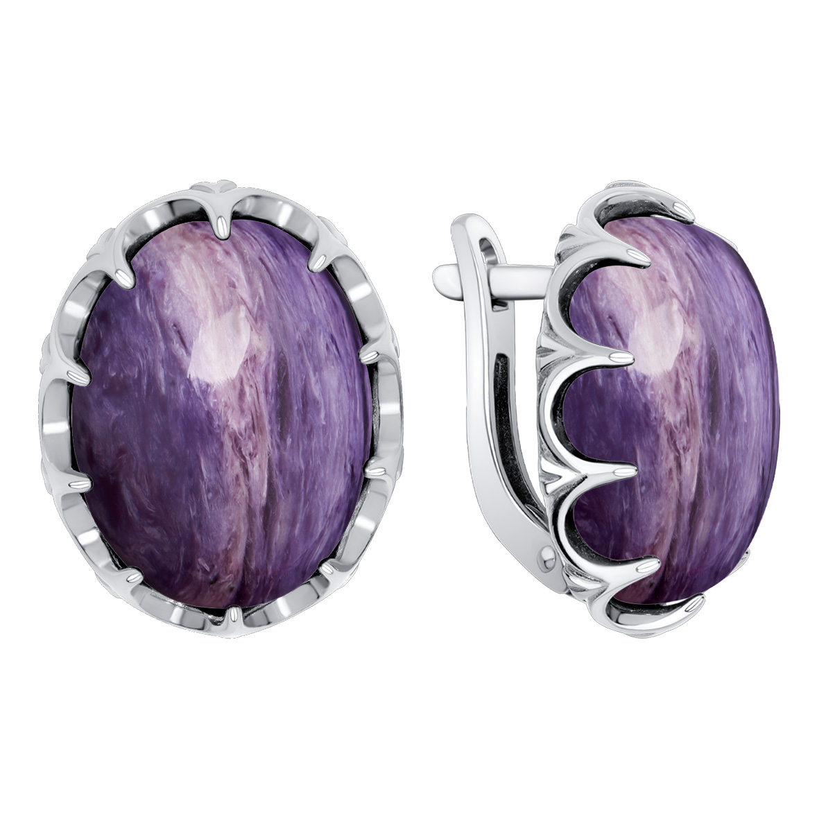 Серьги для женщин из серебра 925 пробы с чароитами из коллекции Уральские самоцветы артикул 2340465772 от компании KRASNOE