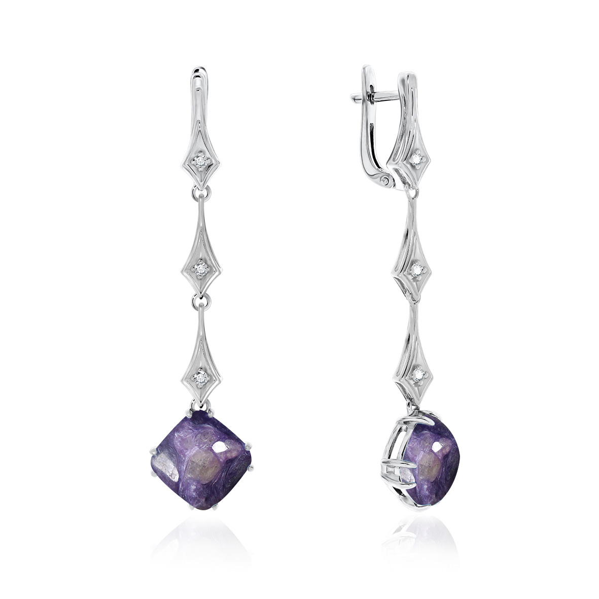 Серьги для женщин из серебра 925 пробы с чароитами,фианитами из коллекции Shine артикул 2340461203 от компании KRASNOE