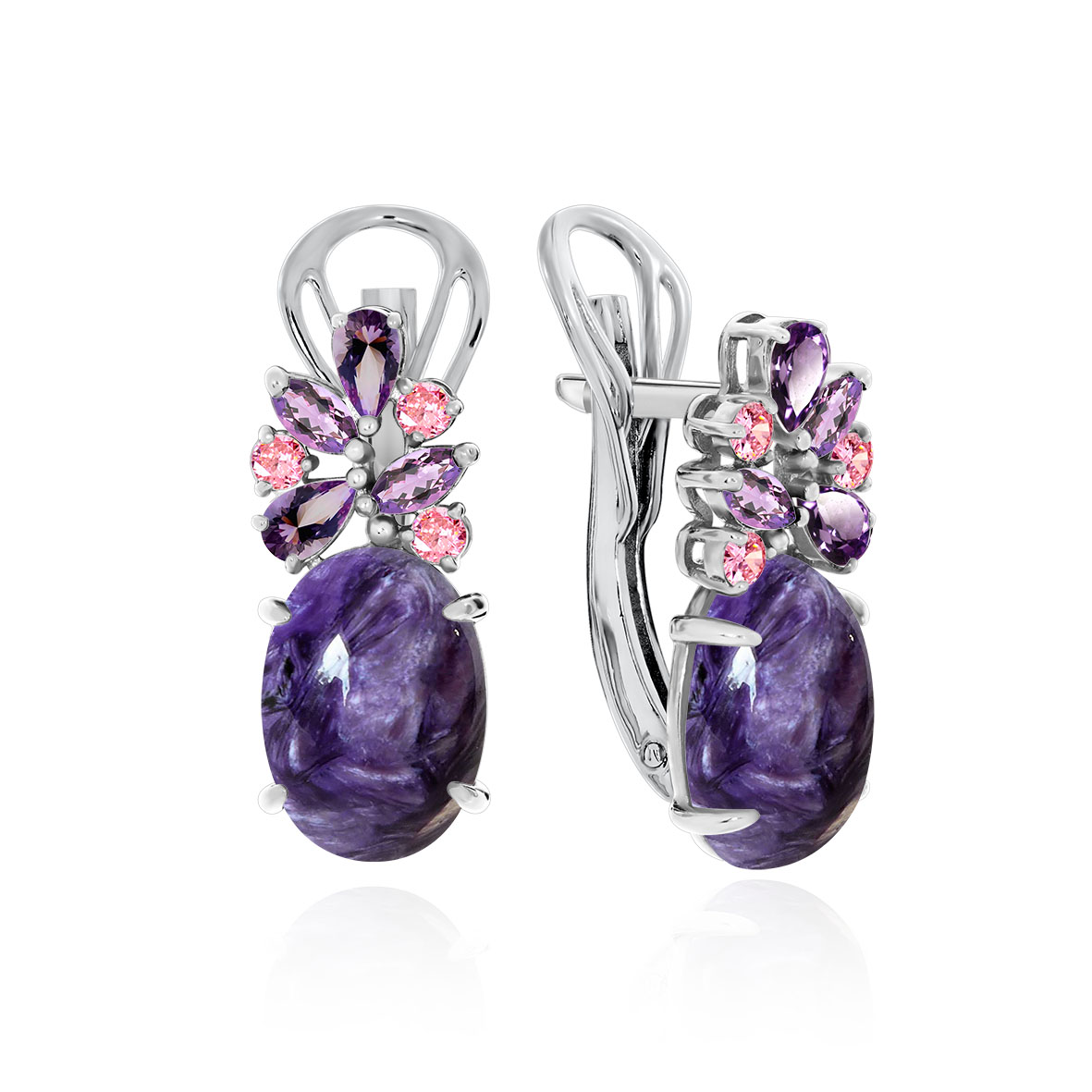 Серьги для женщин из серебра 925 пробы с чароитами,фианитами из коллекции Уральские самоцветы артикул 2340460886-85 от компании KRASNOE