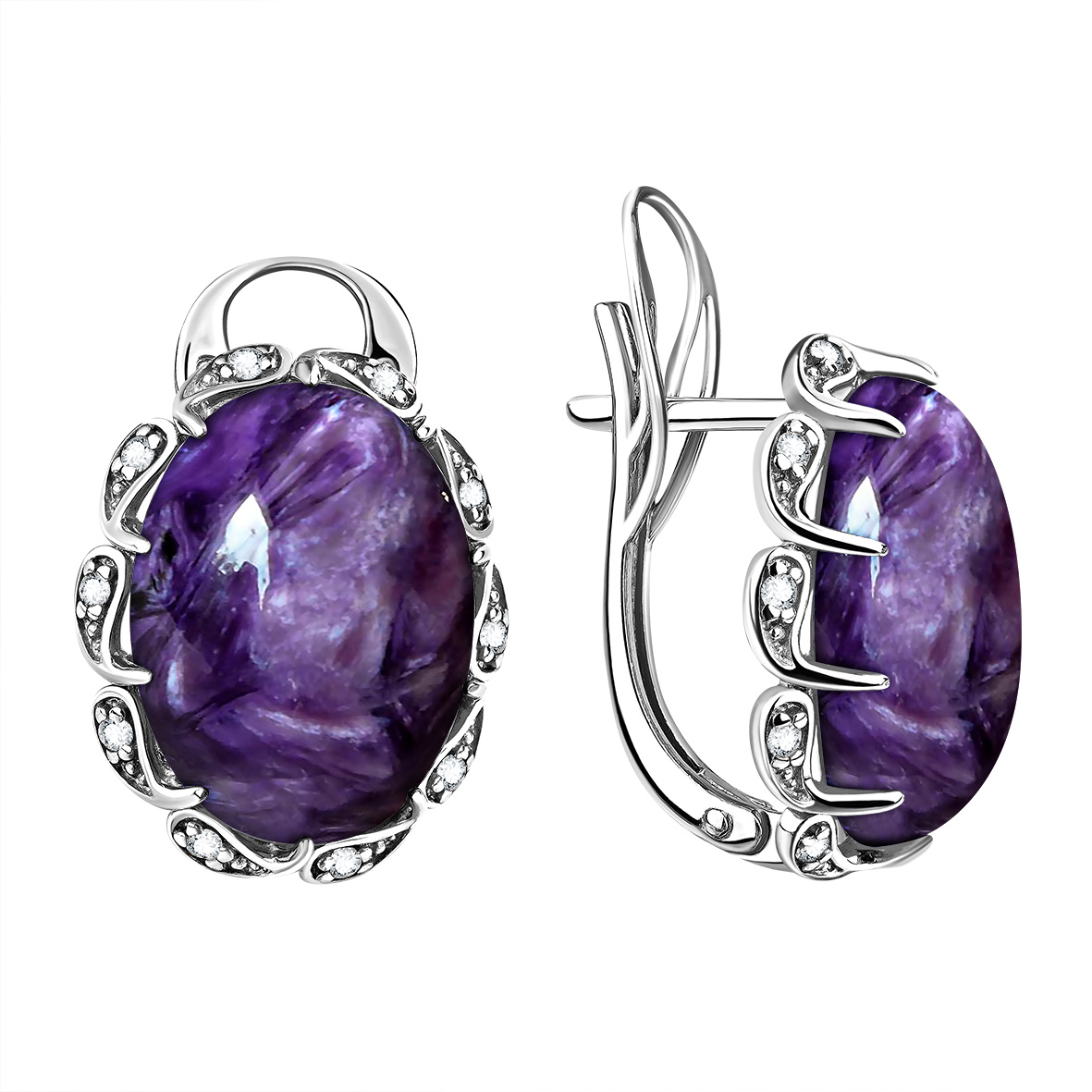 Серьги для женщин из серебра 925 пробы с чароитами,фианитами из коллекции Династия артикул 2340465114л от компании KRASNOE